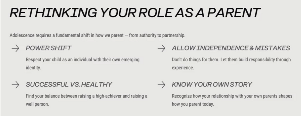 consciousness. Social issues and peer pressure can feel all consuming, as if no other issue could hold a candle to it. This is in part because the amygdala matures faster than the prefrontal cortex. The amygdala handles emotions such as fear, and because it matures faster, it typically has more control. However, this isn’t a reason to deny agency. Why? The prefrontal cortex, which handles impulses and emotional regulation, doesn’t mature until 20s or even 30s. At 18, nothing magically happens that makes people legally considered adults suddenly the epitome of maturity, because it’s a slow process that starts in the teen (and pre-teen) years. Independence and responsibility develop slowly and through experience, which is why it’s so important that teens are allowed to have autonomy over their lives (within reason. So no getting a pet tiger on a whim.) and make their own mistakes. As much as parents may want to prevent them from ever having any mistakes, messing anything up, it’s a crucial process to develop the ability to make independent decisions. The amygdala at this time can also lead to both being increasingly empathetic and caring about global issues while sometimes seeming selfish or self centered in other parts of life. This also may mean that they start developing their own political views that don’t always align with that of their parents. Something else important is to allow them to choose their own priorities in life. For example, a lot of Asian families heavily value education, but not everyone wants to go on to become a doctor. Some people might have aspirations that lie outside of careers requiring high amounts of education, and it’s not the end of the world if they don’t want to take all of the most advanced classes they can. It’s also important that parents don’t project or to try and live out their own aspirations in their children, as that doesn’t allow for them to become their own person and become a happy and well adjusted adult. Another interesting thing mentioned is the idea of generational trauma, and how that can negatively affect the parent-child relationship, and it’s extremely important that parents are aware of how their own childhood experiences may influence their own parenting styles to hopefully stop the cycle of generational trauma that may be present. She also gave a myriad of suggestions for effective communication, such as:
